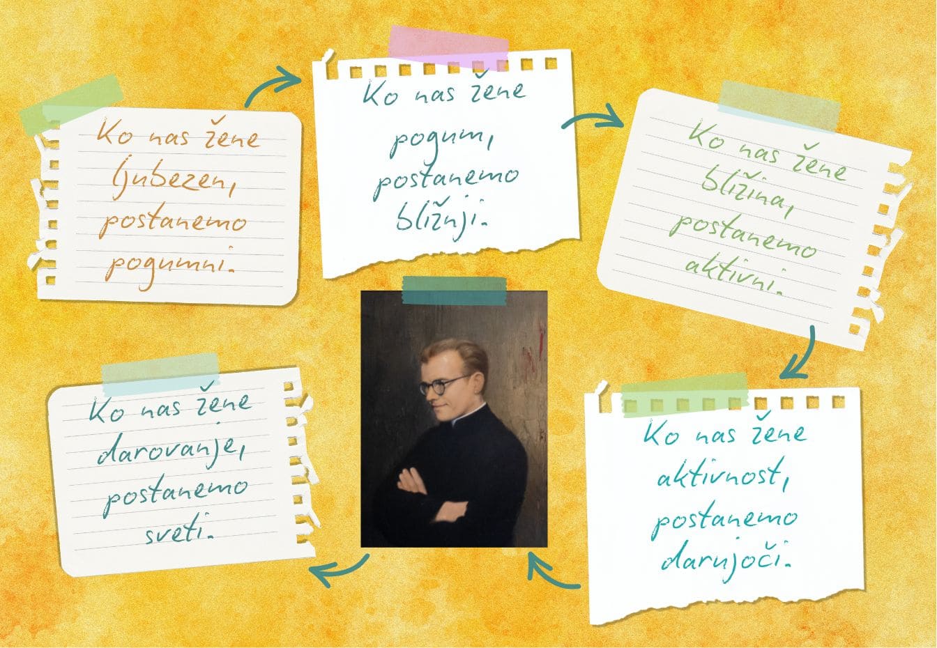 Ko nas žene ljubezen, postanemo pogumni. Ko boste začutili, da imate nekoga radi in da vas ima nekdo rad, da niste sami in da je vir in moč tiste ljubezni Bog sam, potem boste pogumni in boste zmogli pričevati.